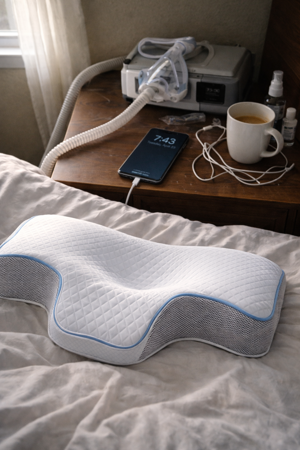 Maintains the natural curve of your neck, preventing the chin-tuck that collapses your airway—with or without CPAP.